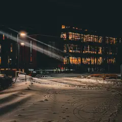 This is a picture of the Mason pond froze over after the snow event. The lights from the sky and the rest of the city give this picture great color.