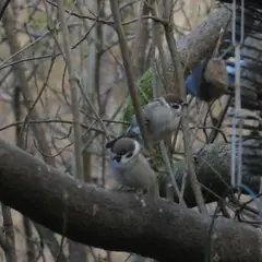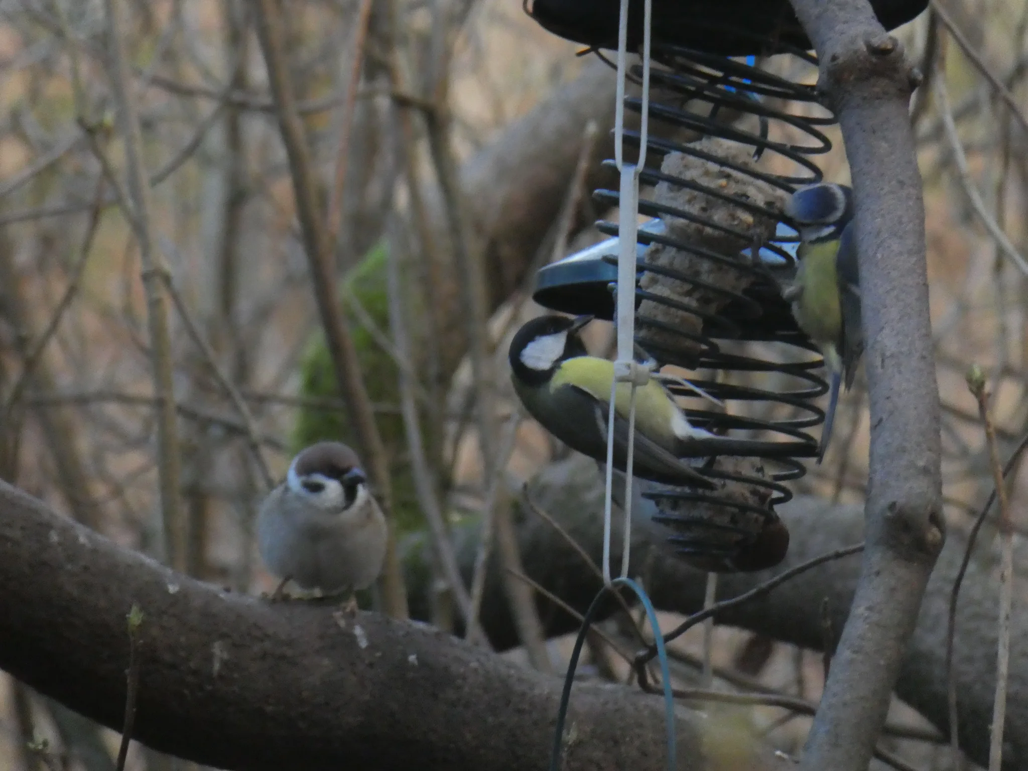 Group containing Great Tit (parus major) and Eurasian Tree Sparrow (passer montanus)